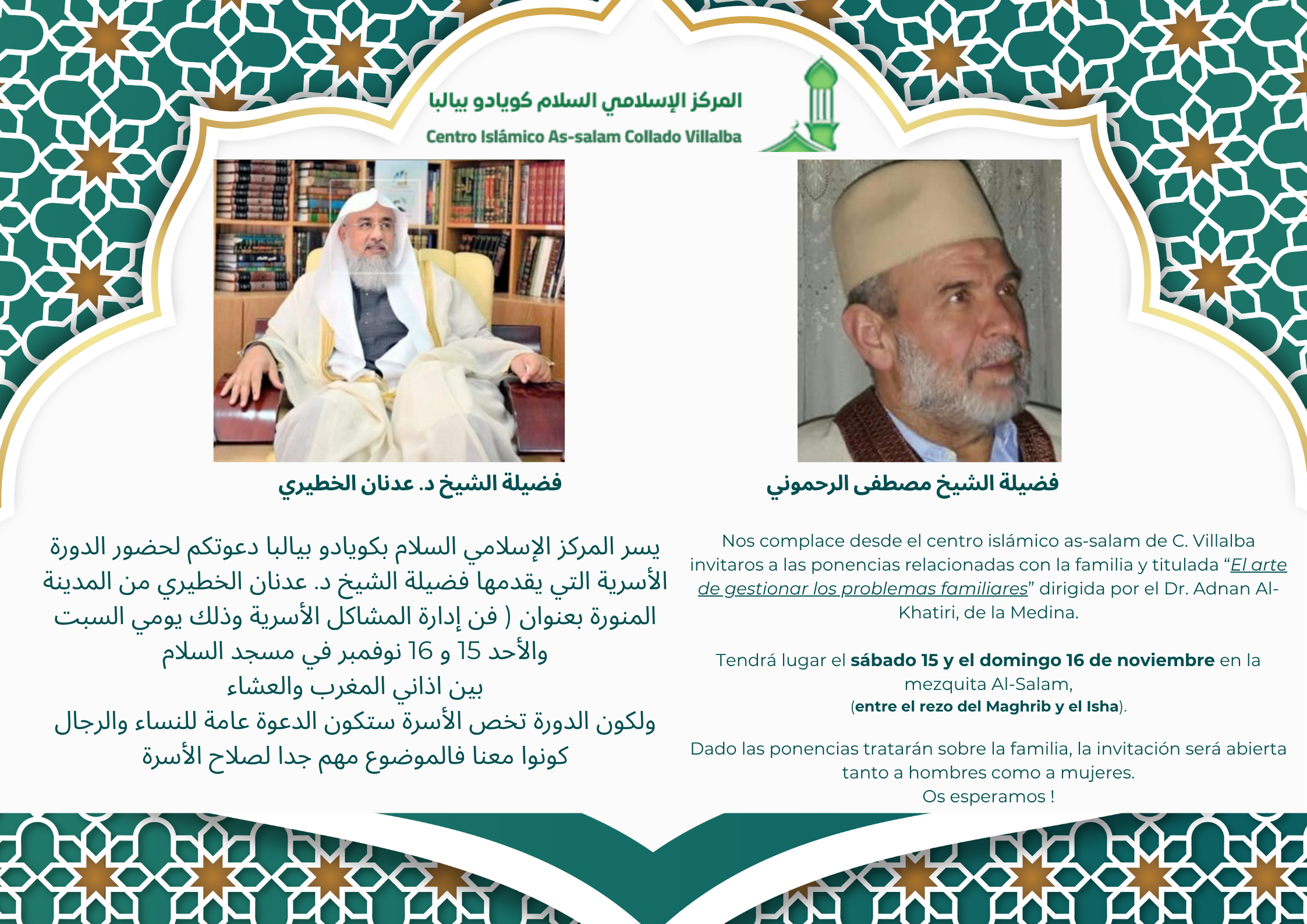 invitaros a las ponencias relacionadas con la familia y titulada “El arte de gestionar los problemas familiares” dirigida por el Dr. Adnan Al-